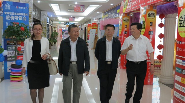 8月9日下午,中國(guó)建筑材料流通協(xié)會(huì)會(huì)長(zhǎng)孟國(guó)強(qiáng)、常務(wù)副會(huì)長(zhǎng)秦占學(xué)、副會(huì)長(zhǎng)張彩虹,及來(lái)自全國(guó)各地各大建材家居市場(chǎng)的中高層管理人員蒞臨家美家居參觀指導(dǎo)。協(xié)會(huì)領(lǐng)導(dǎo)及培訓(xùn)班人員在家美家居多功能廳召開(kāi)交流會(huì),會(huì)上物產(chǎn)集團(tuán)黨委書記、現(xiàn)代物流公司董事長(zhǎng)白家林致辭,歡迎協(xié)會(huì)領(lǐng)導(dǎo)及全體人員,并為大家介紹了公司及家美家居建材城的情況。孟國(guó)強(qiáng)會(huì)長(zhǎng)講話,充分肯定了青海物產(chǎn)規(guī)劃、建設(shè)、運(yùn)營(yíng)家美家居的理念與成績(jī)。會(huì)后,孟會(huì)長(zhǎng)一行80余人在白書記、現(xiàn)代物流公司總經(jīng)理李朝陽(yáng)、黨支部書記竇子賢的陪同下參觀了家美家居。