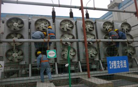 2015年度春檢工作的主要任務(wù)包括:對(duì)1-4#整流變機(jī)組72臺(tái)油冷卻風(fēng)機(jī)檢修;對(duì)丁物ⅠⅡ回路全線巡查;對(duì)開(kāi)關(guān)站瓷瓶防污閃清理等開(kāi)展工作。