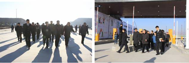 在保稅物流中心卡口上方"青海曹家堡保稅物流中心"以中英文兩種字體呈現(xiàn),海關(guān)標(biāo)識(shí)赫然醒目。王黎明副省長一行在實(shí)地查看了1#、2#保稅倉庫、卡口、查驗(yàn)庫、辦事大廳等設(shè)施,并邊走邊聽取物產(chǎn)集團(tuán)總經(jīng)理王玉輝關(guān)于工程施工進(jìn)展情況的匯報(bào)。