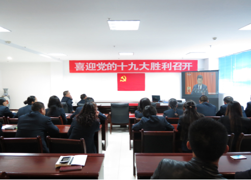 (現(xiàn)代物流 訊 和永歡/文趙琳/攝)10月18日上午9時(shí),舉世矚目的中國共產(chǎn)黨第十九次全國代表大會(huì)在北京人民大會(huì)堂隆重開幕。現(xiàn)代物流公司黨支部組織全體黨員、發(fā)展對象、入黨積極分子、主管以上干部及商戶黨員代表共計(jì)25人在公司會(huì)議室收看了十九大開幕式直播盛況,并認(rèn)真聆聽了習(xí)總書記代表十八屆中央委員會(huì)作的報(bào)告。