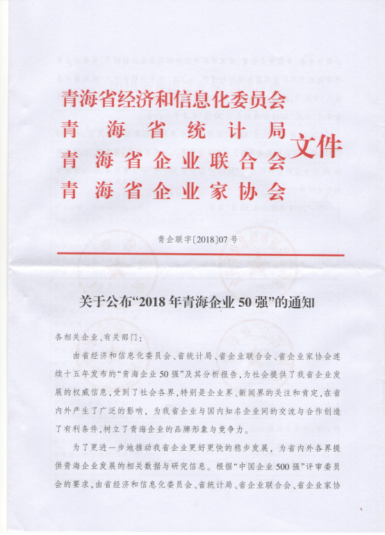(集團總經(jīng)辦?訊 戴淑琳/文)2017年,青海物產(chǎn)緊緊圍繞"穩(wěn)中求進"工作總基調(diào),全面落實五大任務(wù)新措施,主動適應(yīng)經(jīng)濟發(fā)展新常態(tài),積極融入"一帶一路"建設(shè)機遇期,全力以赴創(chuàng)收增效,全力推動項目建設(shè),全力促進轉(zhuǎn)型升級,保持了營收穩(wěn)步增長、效益穩(wěn)步提升、項目平穩(wěn)推進、結(jié)構(gòu)不斷優(yōu)化的良好態(tài)勢。近日,青海省經(jīng)濟和信息化委員會、省統(tǒng)計局、省企業(yè)聯(lián)合會、省企業(yè)家協(xié)會聯(lián)合印發(fā)了《關(guān)于公布"2018年青海企業(yè)50強"的通知》(青企聯(lián)字〔2018〕07號),青海物產(chǎn)再次入選青海企業(yè)50強,名列第12位。