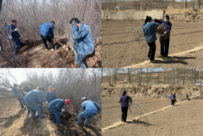 在大家的共同努力下,千余棵桃樹和紫丁香被連根“請(qǐng)”出,它們隊(duì)列整齊地矗立在綠化指定區(qū)域??粗矍耙言苑N完畢的小樹苗,黨員代表張濤同志感慨地說(shuō)到:今天的黨日、團(tuán)日活動(dòng)不僅讓我們有幸參與到“愛企、護(hù)企”行動(dòng)之中,用自己的雙手為物產(chǎn)北川工業(yè)物流園區(qū)域內(nèi)景觀增添了一片綠色、再造一處景觀。