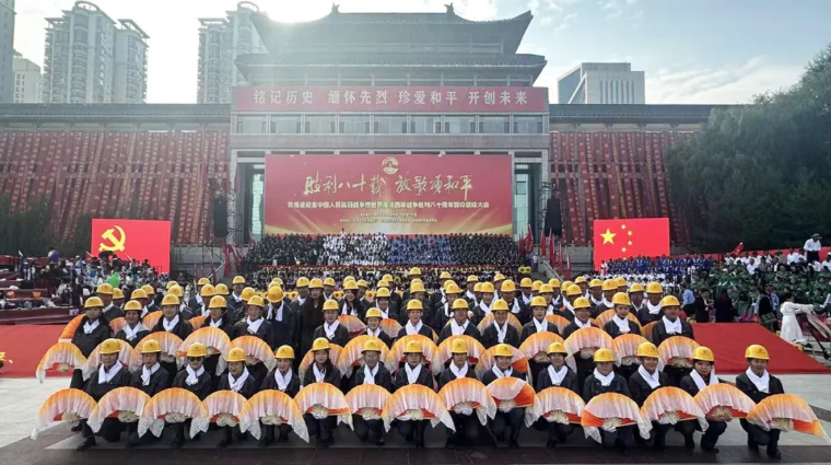 9月5日上午,勝利八十載 放歌頌和平——青海省紀(jì)念中國人民抗日戰(zhàn)爭暨世界反法西斯戰(zhàn)爭勝利八十周年群眾歌詠大會(huì)在新寧廣場隆重舉行。由省物產(chǎn)集團(tuán)80名職工組成的合唱方陣代表全省企業(yè)參加演出活動(dòng)。集團(tuán)黨委書記、董事長劉玲,集團(tuán)黨委專職副書記、工會(huì)主席魏廷強(qiáng)參加紀(jì)念大會(huì)。