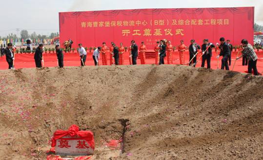 領導和嘉賓為青海曹家堡保稅物流中心(B型)及綜合配套工程項目奠基