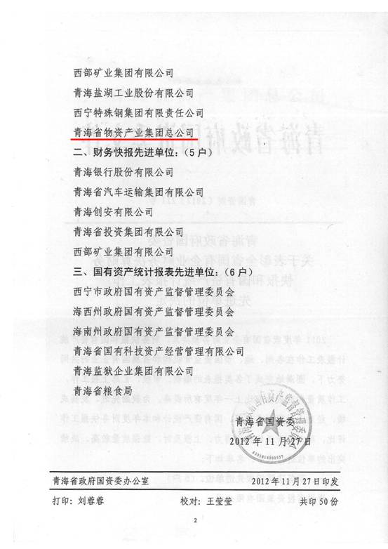 2012年,在集團(tuán)及所屬各公司領(lǐng)導(dǎo)的高度重視下,在所屬各公司的大力支持和密切配合下,在辛勤工作在財務(wù)會計崗位上的同事們的共同努力下,集團(tuán)總公司圓滿完成了省國資委和省財政廳各類報表的上報工作,財務(wù)信息工作質(zhì)量、時效性和財務(wù)分析水平都比上一年度有所提高,受到了省國資委和省財政廳的好評,集團(tuán)總公司2011年度財務(wù)決算工作被省國資委評為先進(jìn)單位,集團(tuán)財務(wù)審計部張莉青同志被省財政廳評為2012年度財務(wù)快報工作先進(jìn)個人。