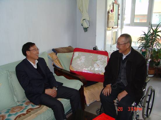 2013年1月28日,春節(jié)來臨之際,省委組織部王志明副部長在省國資委黨委副書記毛占彪、物產(chǎn)集團領(lǐng)導白家林、王仁芬的陪同下,走訪慰問了集團系統(tǒng)生活困難老黨員肖振東。王志明副部長親切地詢問肖振東的身體狀況、生活和家庭情況,發(fā)放了慰問金和慰問品,并希望他保重身體,愉快安度晚年。老黨員肖振東激動地表示感謝黨組織的關(guān)懷,感謝上級領(lǐng)導的關(guān)心!